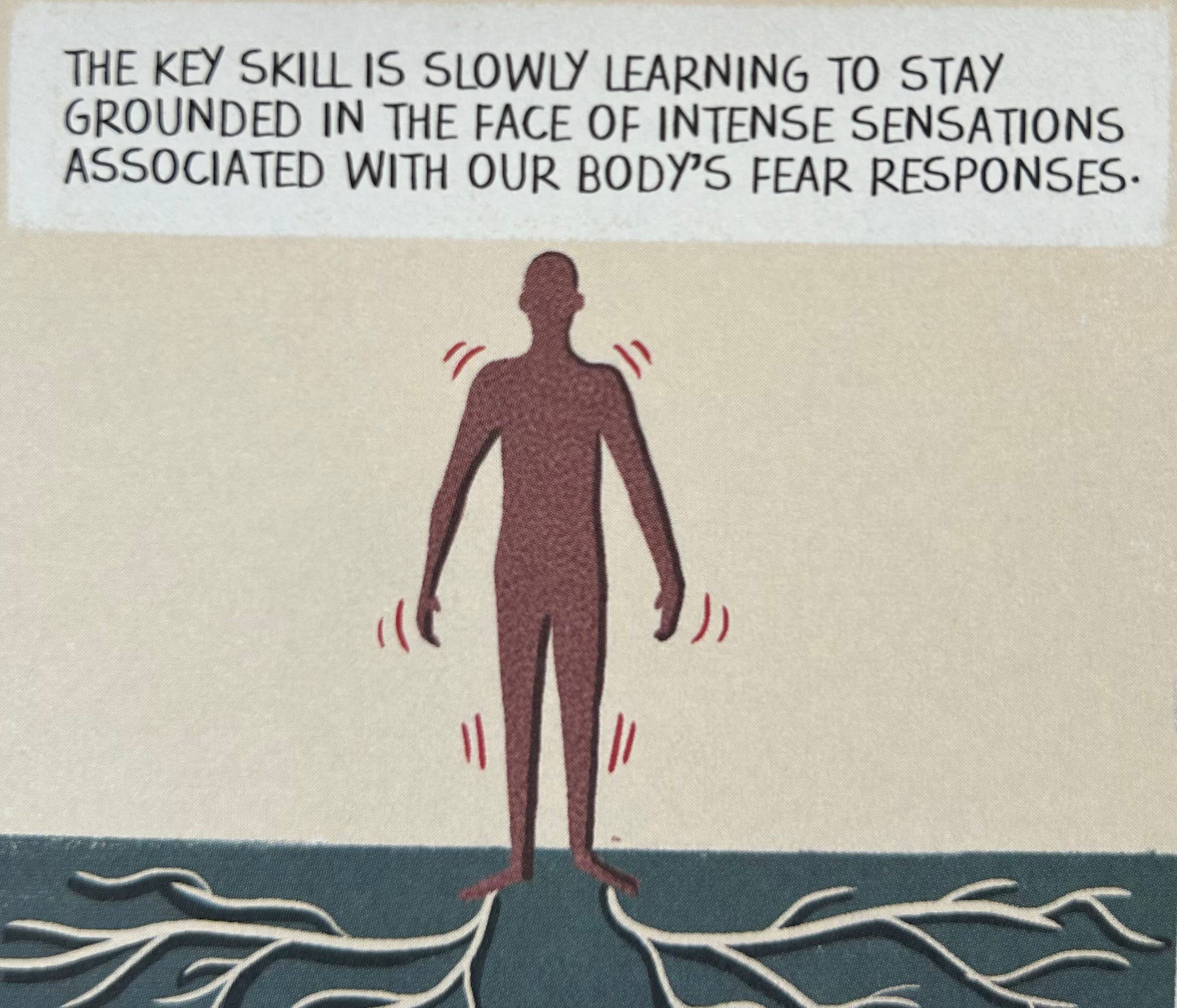 In trauma, the brain is acting as if the danger is still happening now - grounding ourselves in the present can change these overreactive reflexes.